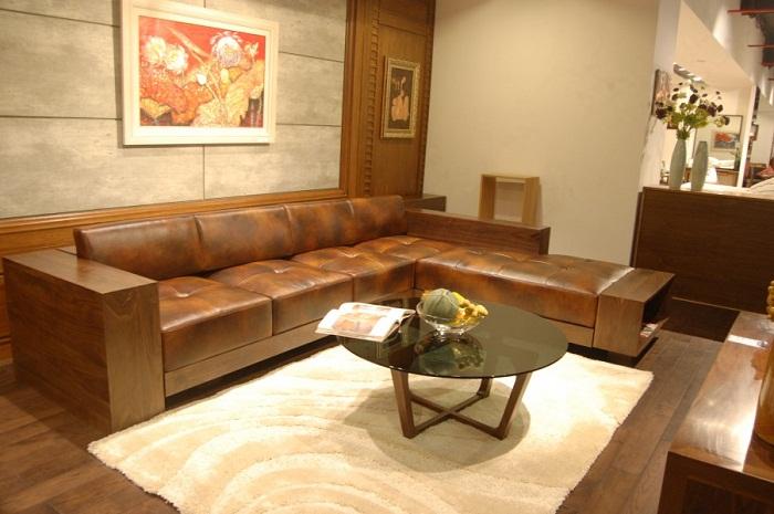 Mở màn cho những mẫu sofa gỗ óc chó đẹp, dòng gỗ cao cấp thời thượng có độ bền trường tồn theo năm tháng và phù hợp với kiểu thời tiết nhiệt đới gió mùa ẩm ở nước ta là mẫu sofa chữ L sang trọng.