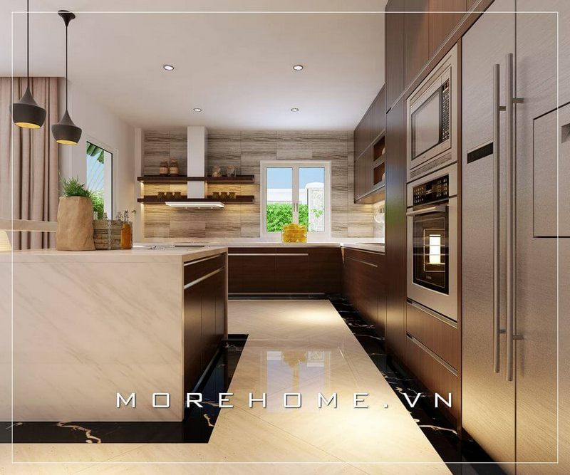 . Tủ bếp chữ L được thiết kế để phù hợp với cả phần bếp nấu và khu vực xơ chế rửa thực phẩm, giúp cho việc nấu nướng và dọn dẹp trở nên dễ dàng hơn.